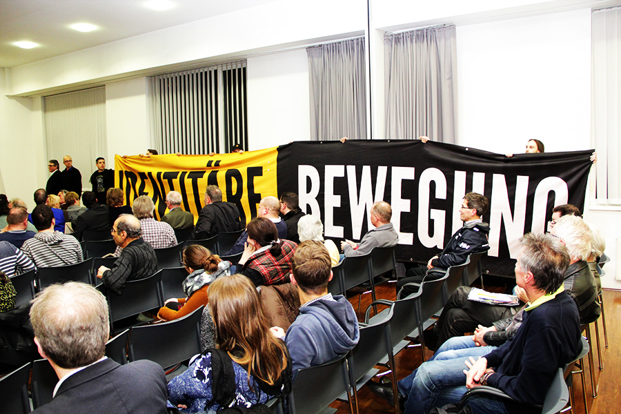In Graz fand am 14.3.2016 ein Asyl-Informationsabend statt. Anstatt die Bevölkerung umfangreich über die Asylproblematik und die verfehlte Regierungspolitik aufzuklären, sollten auch diesmal die Bürger von Graz mit Halbwahrheiten ruhiggestellt werden. Als bei der Veranstaltung offensichtlich nur noch die Themen der Asyllobby nach mehr Geld und Integration eine Rolle spielten, entrollten die Aktivisten der Identitären Bewegung ein zehn Meter langes Transparent. Alleine der Name „Identitäre Bewegung“ reichte aus, um die Veranstalter aus dem Konzept zu bringen.