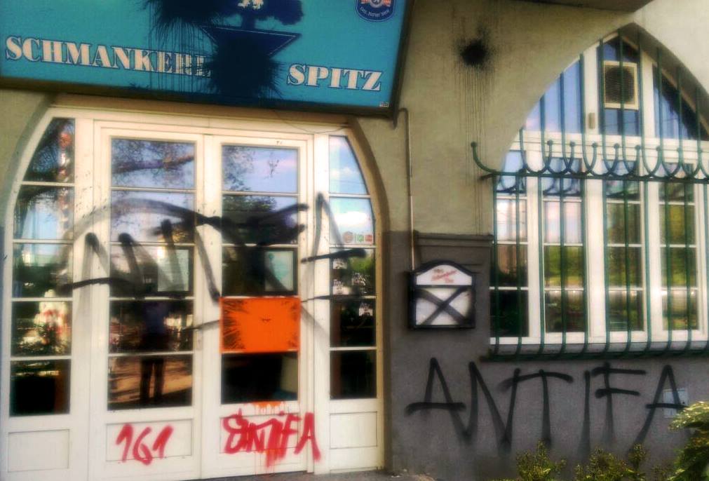 Das Gasthaus „Schmankerl Spitz“ in Wien-Simmering wurde in der gestrigen Nacht Opfer eines linksextremen Anschlages. Der Gastgarten wurde verwüstet, Schlösser aufgebrochen und die komplette Fassade mit Hassbotschaften und der Signatur „Antifa“ besprüht. Die Wirte stehen unter Schock.